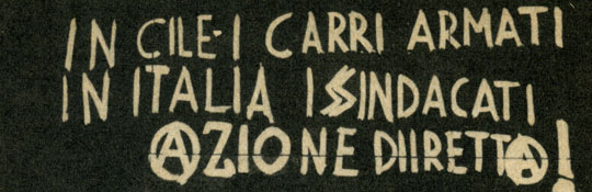 Pintada a la Universitat de Roma: «A Xile, els tancs. A Itàlia, els SSindicats» (març de 1977).